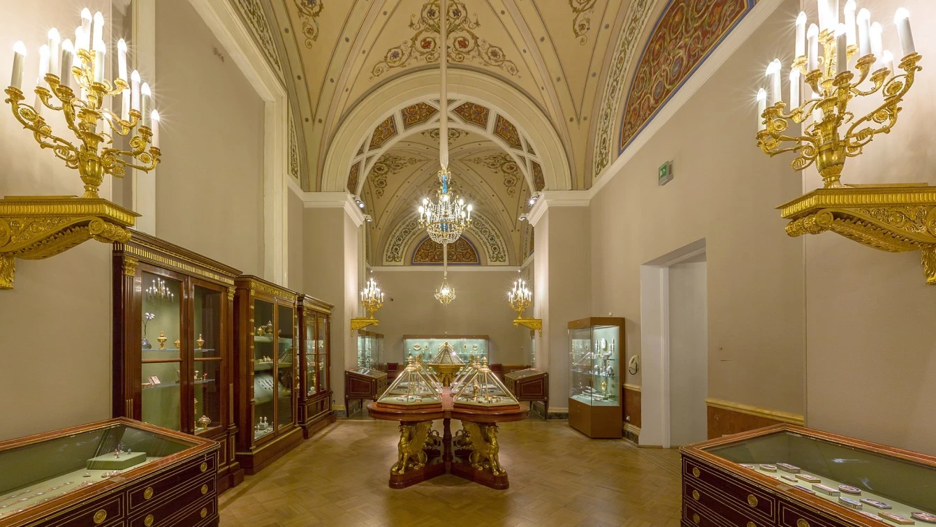 Бриллиантовая кладовая в Зимнем дворце — это ювелирные изделия и драгметаллы от скифских курганов до коллекций Романовых. Здесь работы византийских, европейских и русских мастеров, церковные реликвии, дипломатические подарки вроде даров Надир-Шаха. Коллекция тянется от древностей до 1900-х, с акцентом на огранку, эмаль и филигрань.