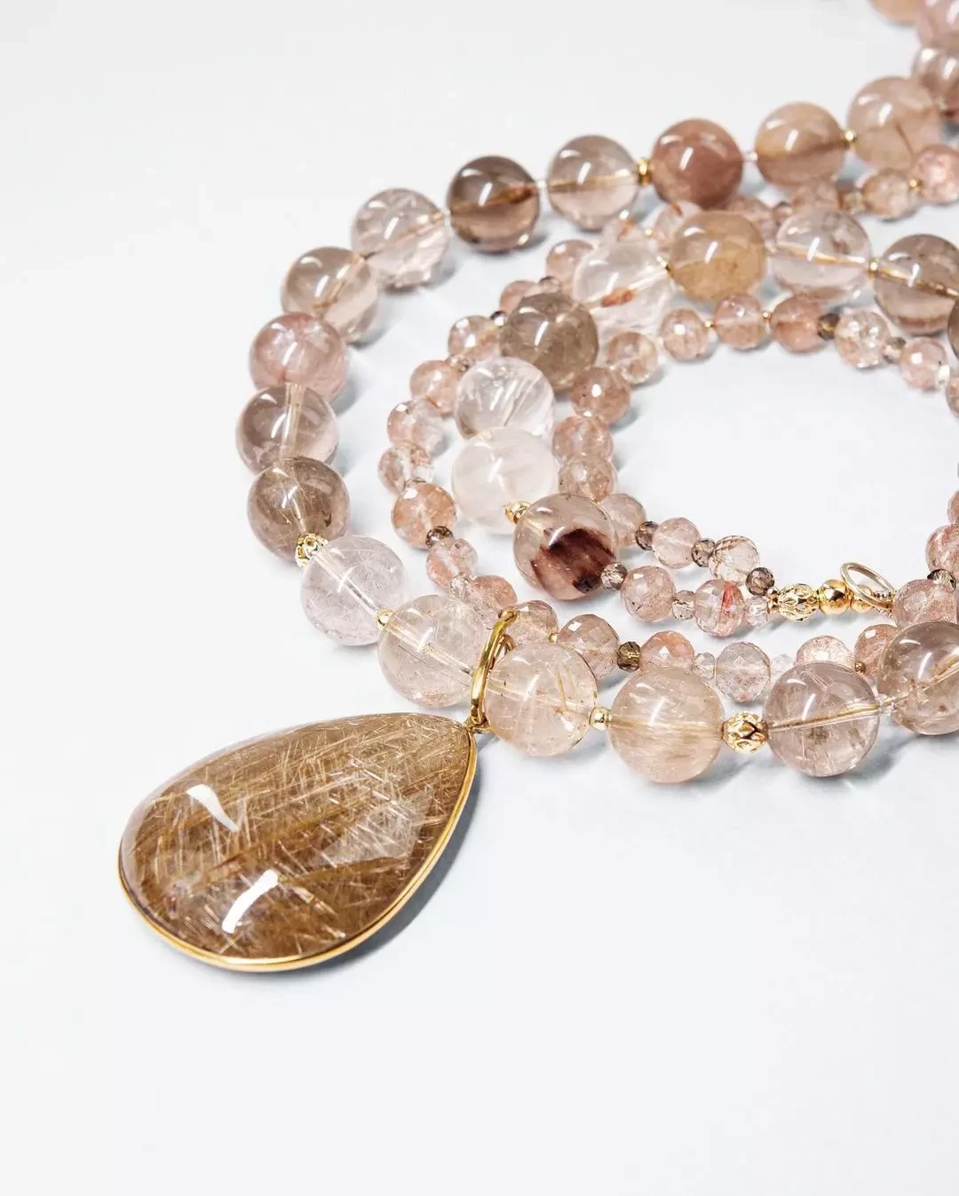 Бусы с кулоном рутиловый кварц