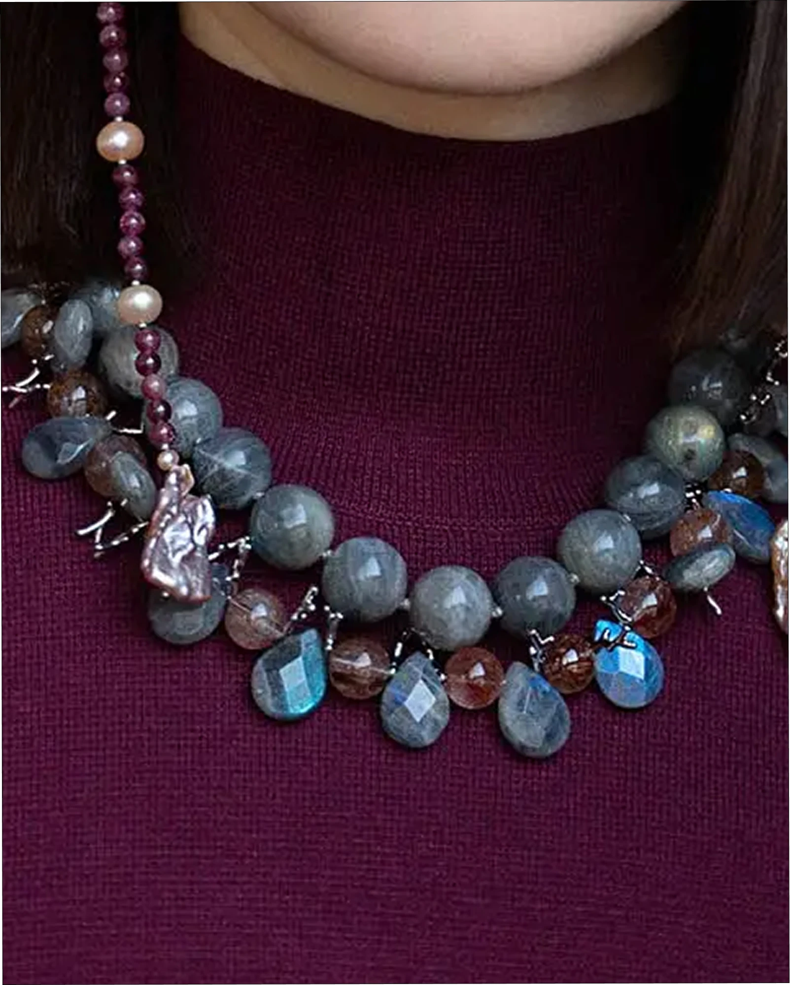 Бусы лабрадорит, кварц