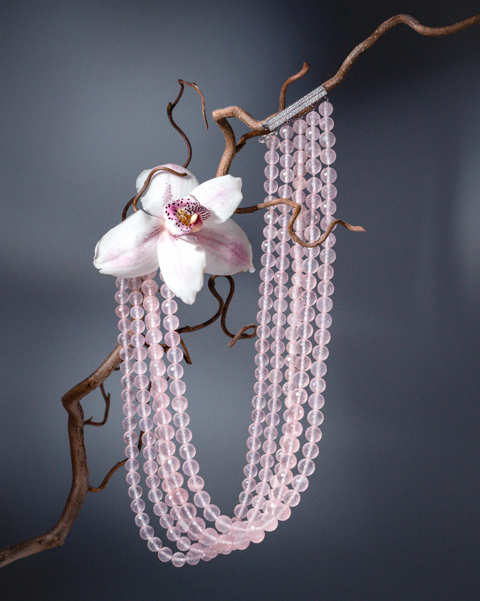 История розового кварца уходит в глубокую древность: его ценили римляне и египтяне, использовали в косметических ритуалах, считая источником свежести и молодости кожи. Современная ювелирная культура делает ставку на прозрачные образцы — именно они позволяют раскрыть природную пластику камня и создать украшения с художественной глубиной, а не декоративной поверхностью.