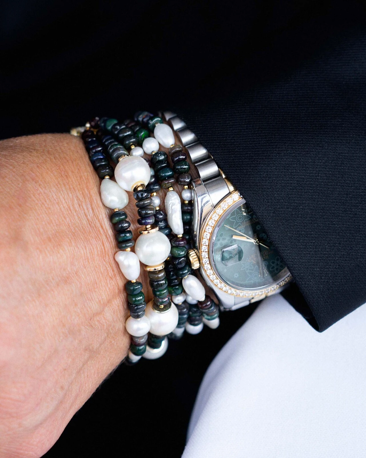Браслеты и кольца: браслеты, где жемчуг чередуется с золотом, а также массивные коктейльные кольца, в которых жемчужина является центральным элементом, подчеркивают статус и чувство стиля. Они могут стать тем самым акцентом, который превратит простой наряд в продуманный look.