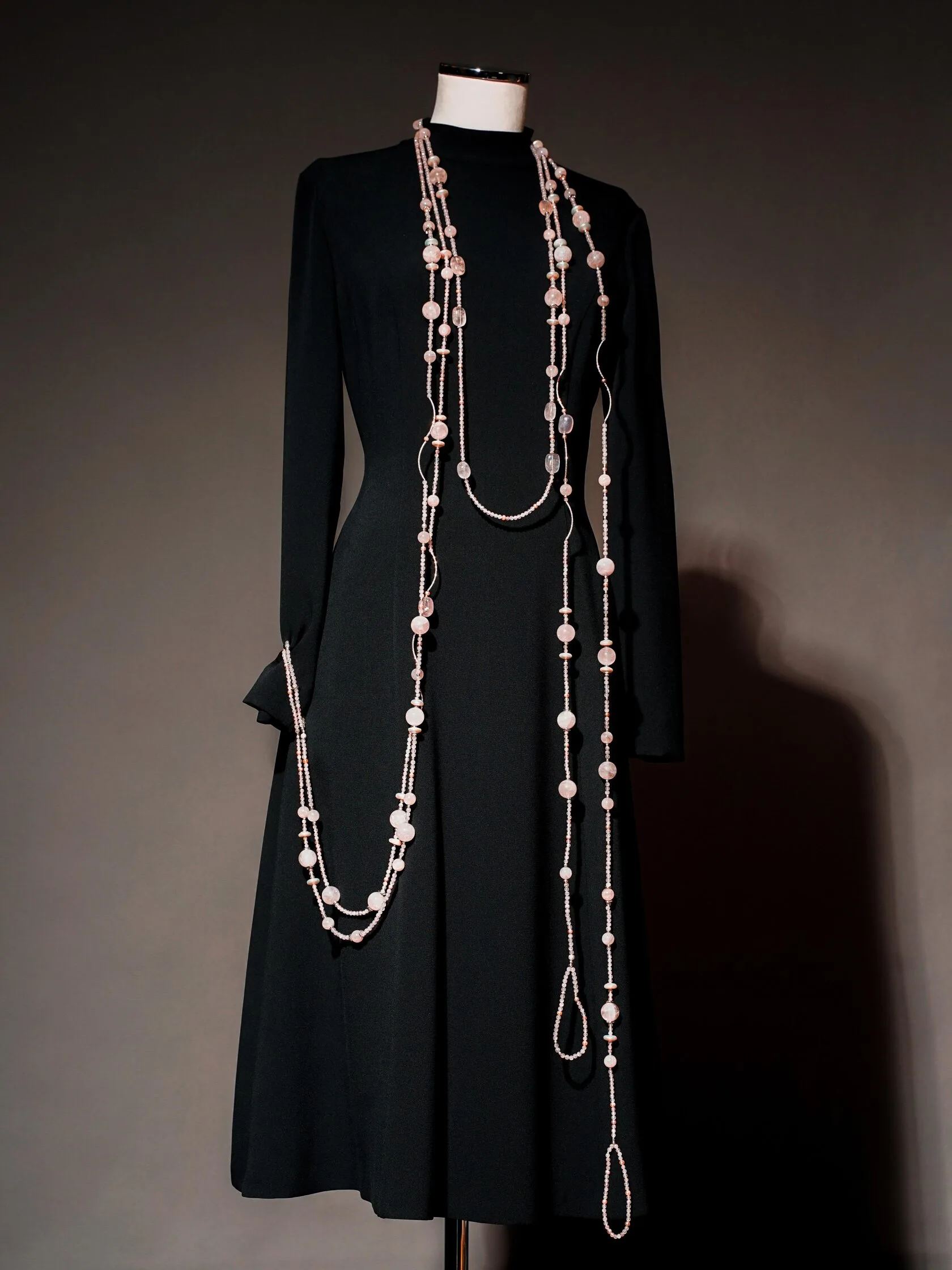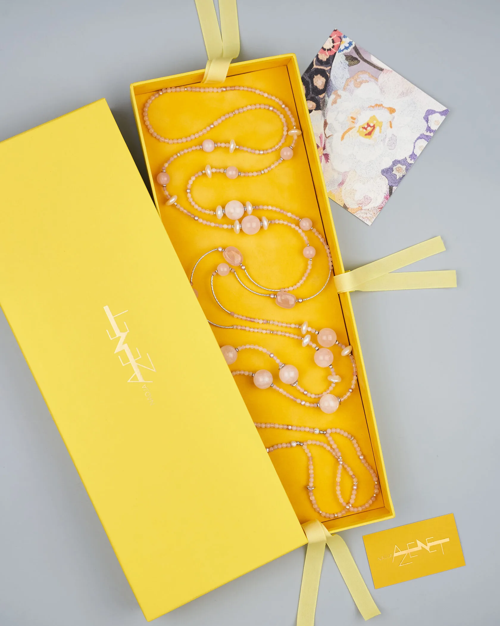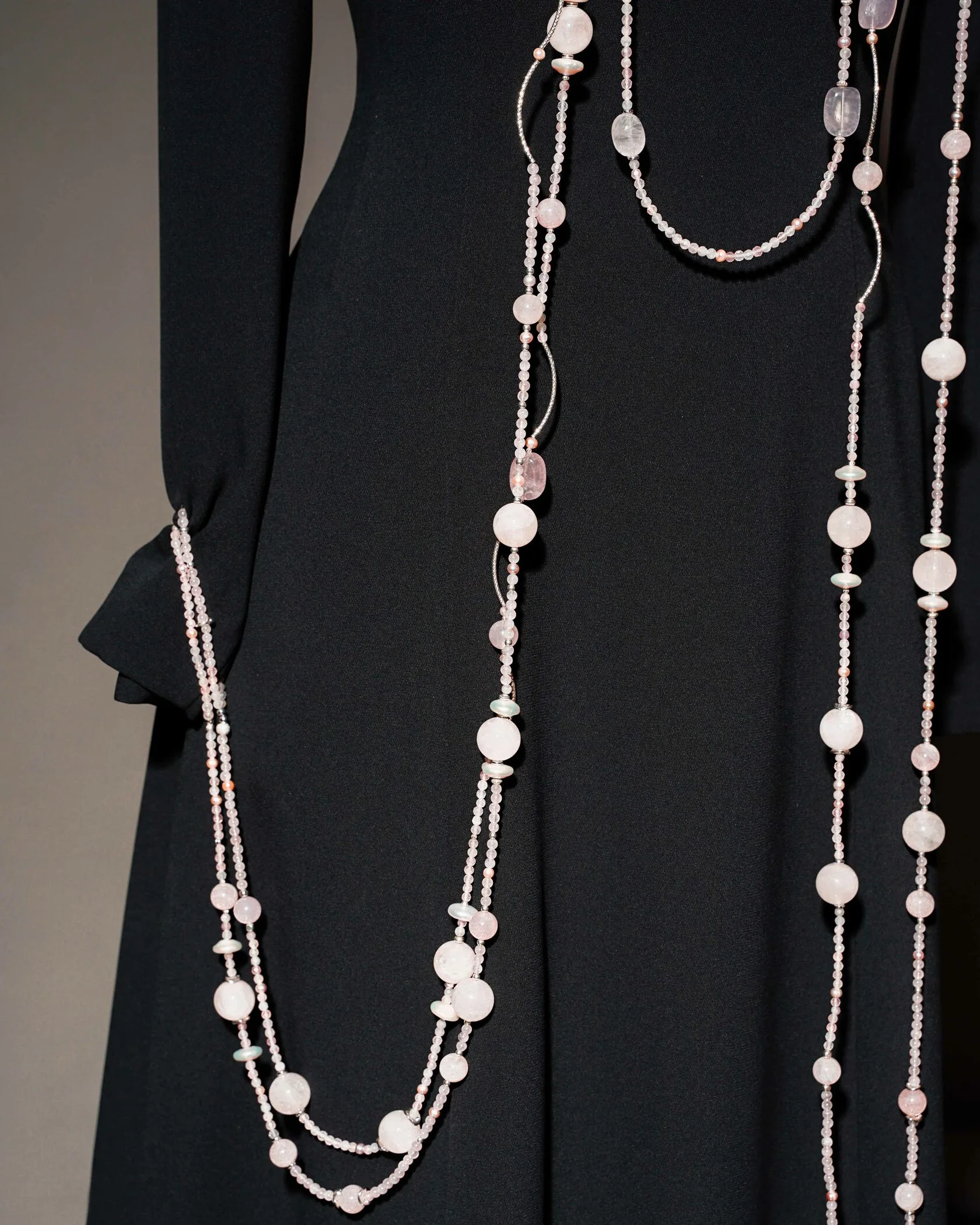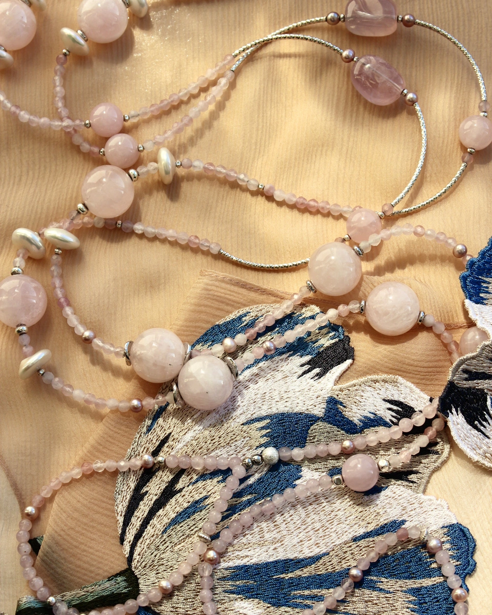 Аркан: розовый кварц, жемчуг, премиум фурнитура