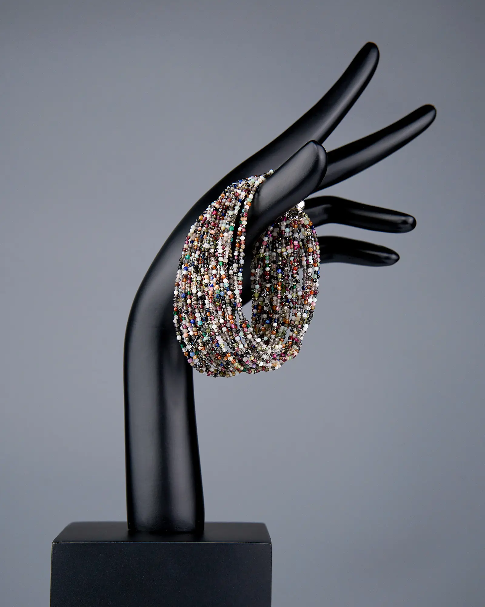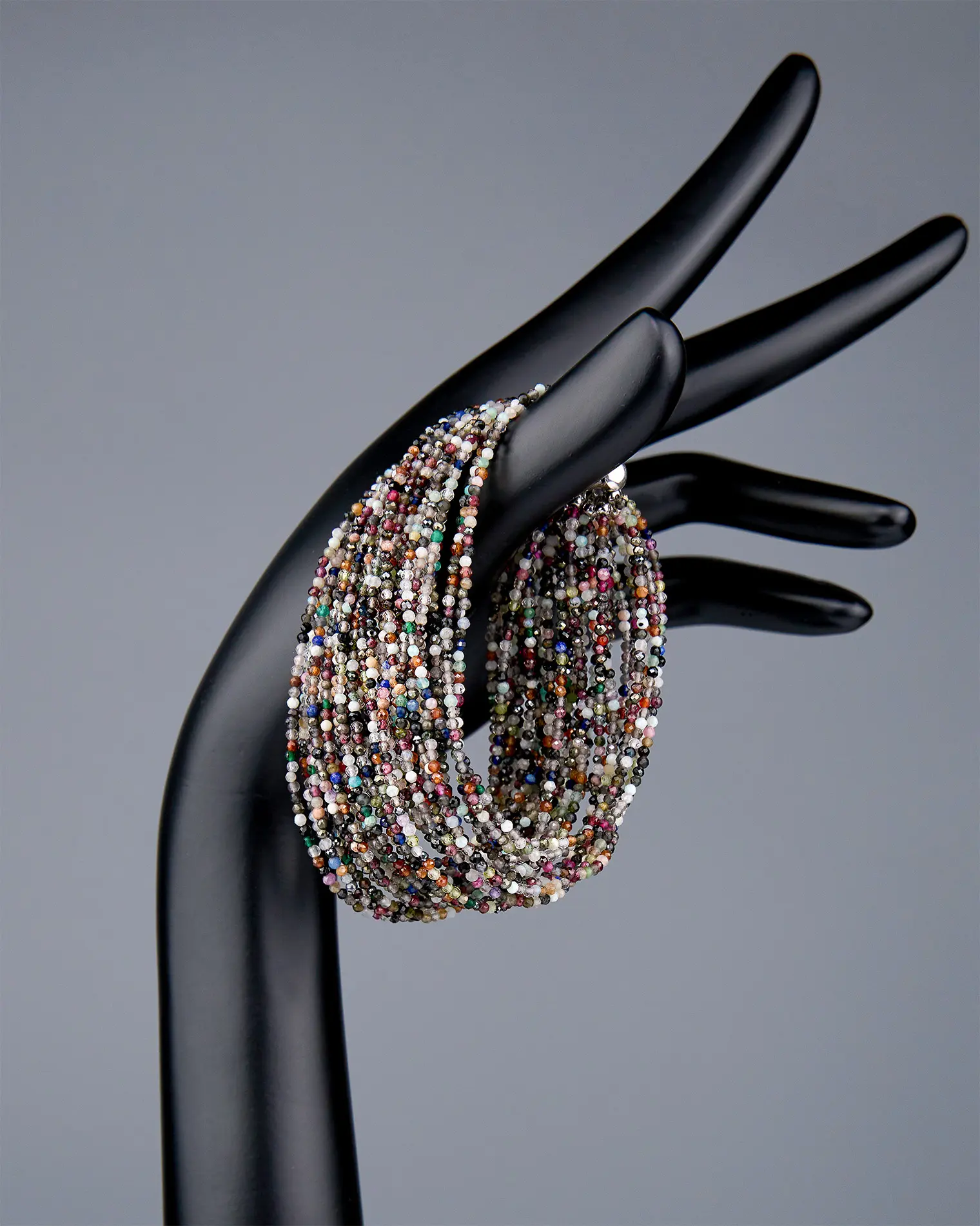 Браслет выполнен из 30 рядов разнообразных натуральных камней! Каждый самоцвет с ювелирной огранкой создает завораживающее мерцание. Браслет фиксируется удобной металлической застежкой, обеспечивая надежную посадку на запястье. Этот яркий аксессуар дополнит любой образ, придавая ему особую гармонию и утонченность. А сочетание натуральных минералов подарит заряд позитивной энергии и подчеркнет вашу индивидуальность.