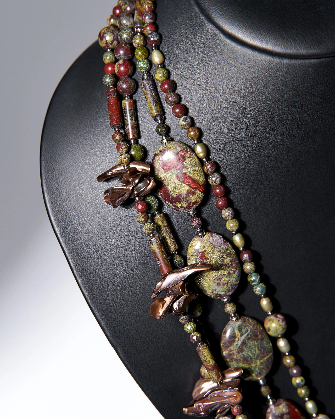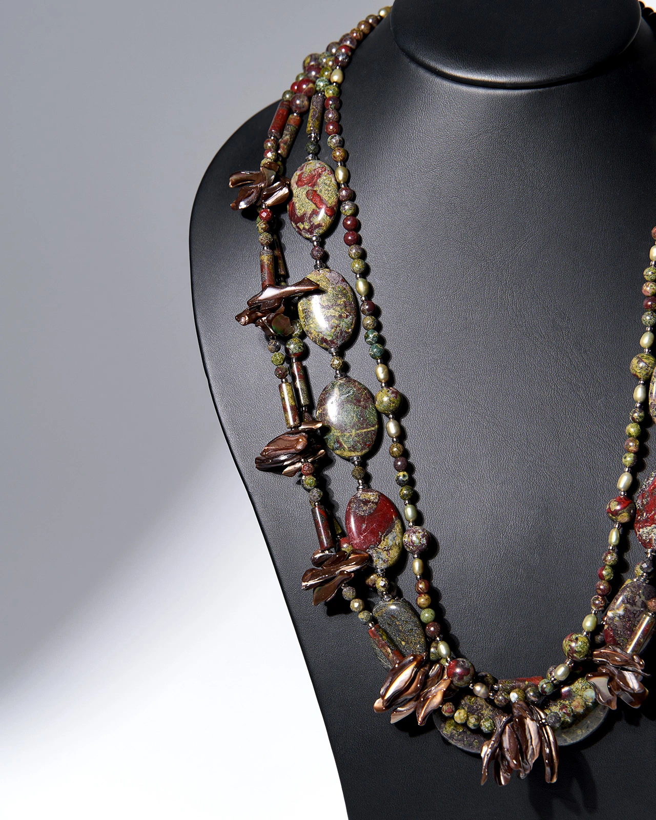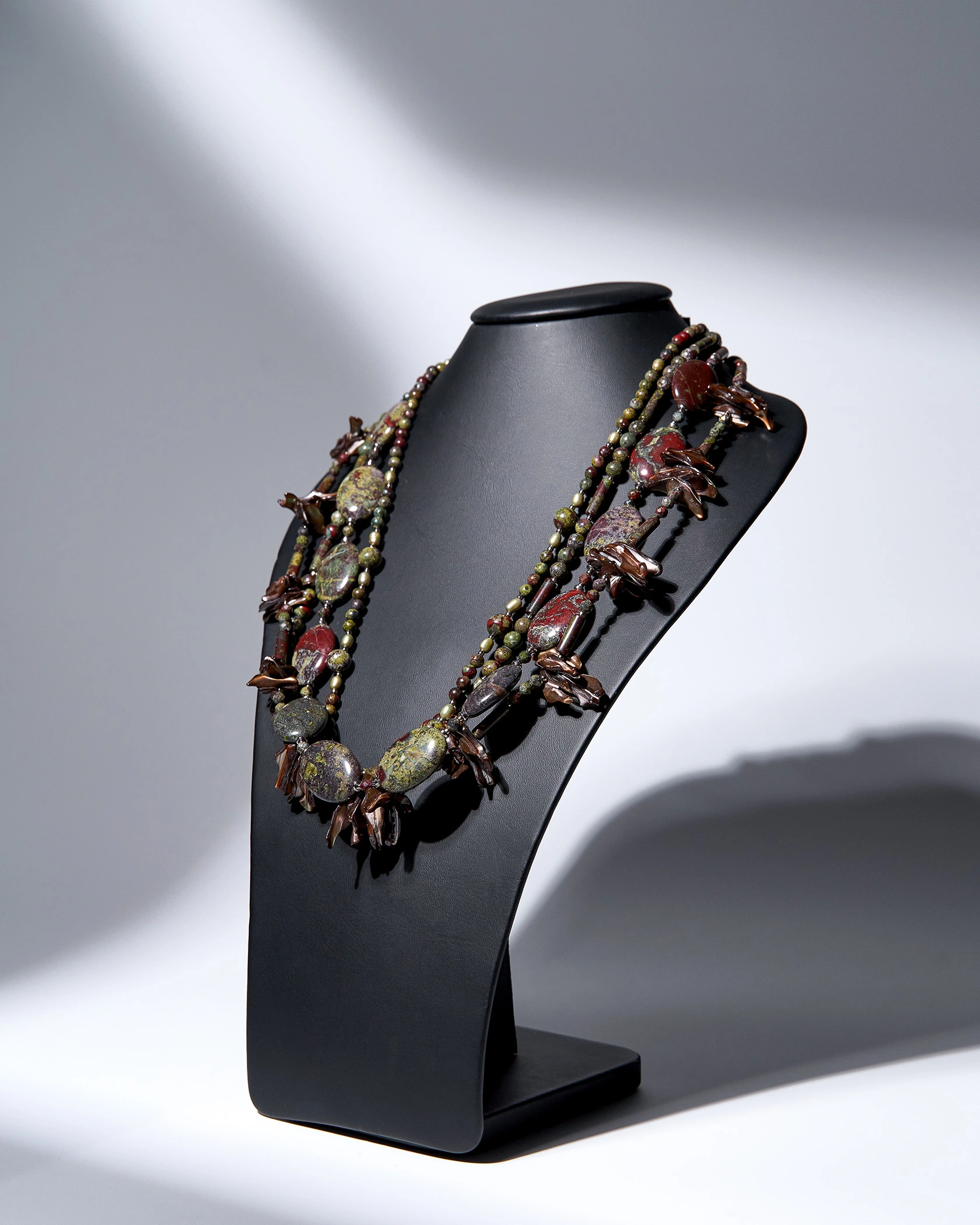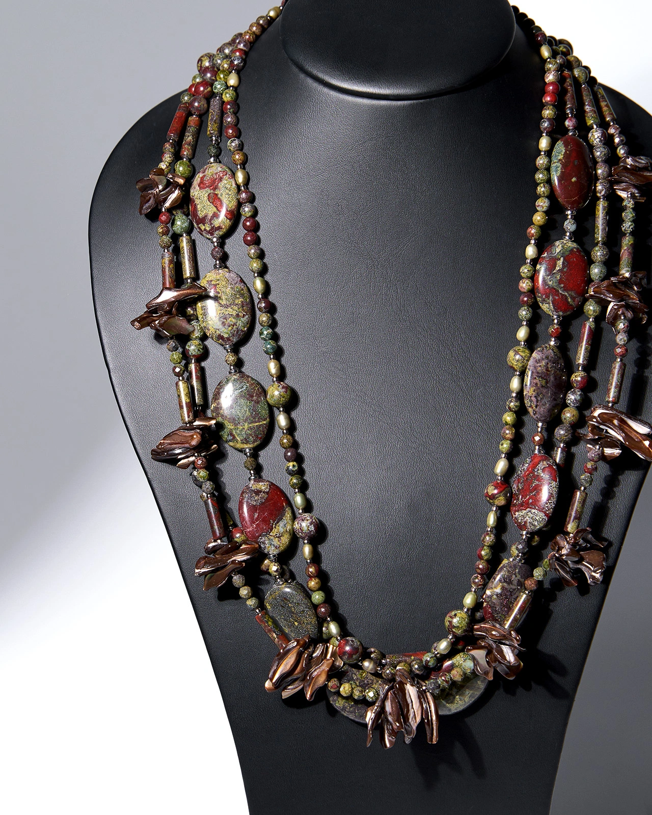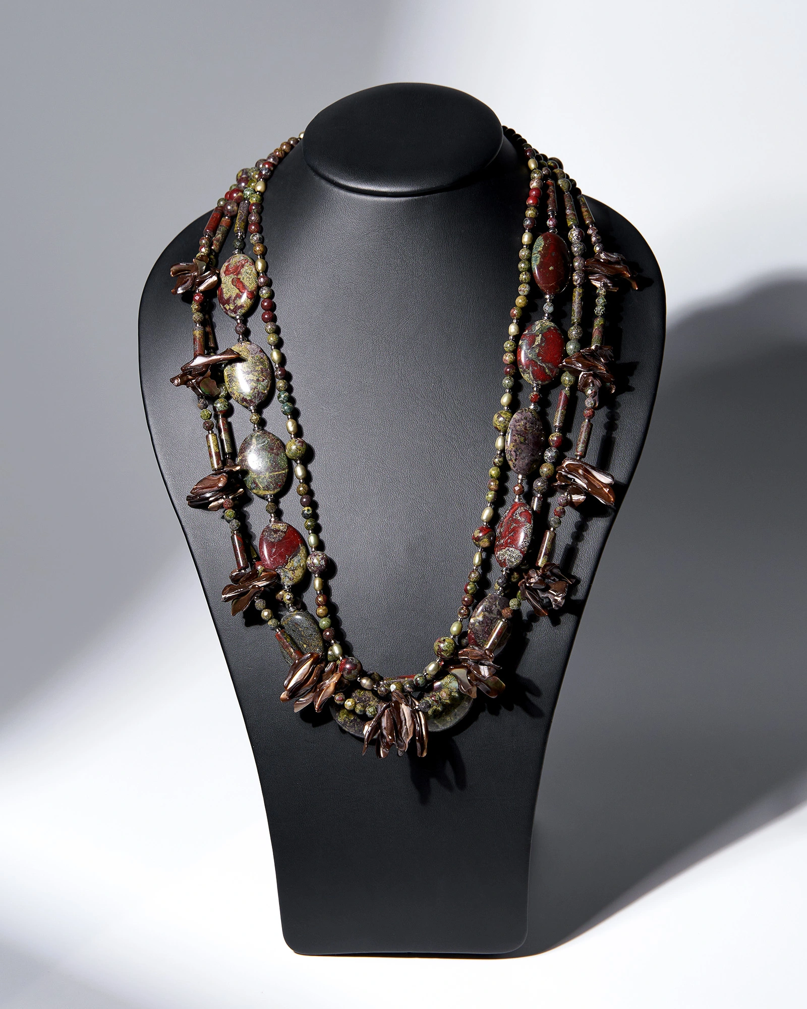 Бусы: яшма кровь дракона, перламутр, жемчуг.
