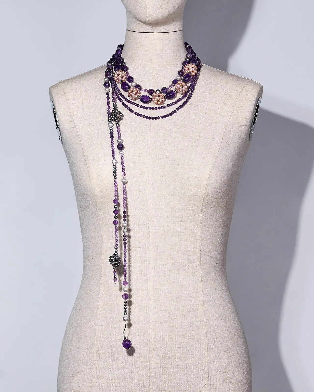 Новая коллекция украшений — результат творческого диалога с визионером русской моды Татьяной Парфеновой. Мы создавали их как часть единого художественного замысла для ее показа на форуме «Содружество Моды» 2025. Пронизанные духом коллекции, они воплотили в металле и камнях её эстетику, а некоторые из них стали звёздами подиума, дополнив ключевые образы.