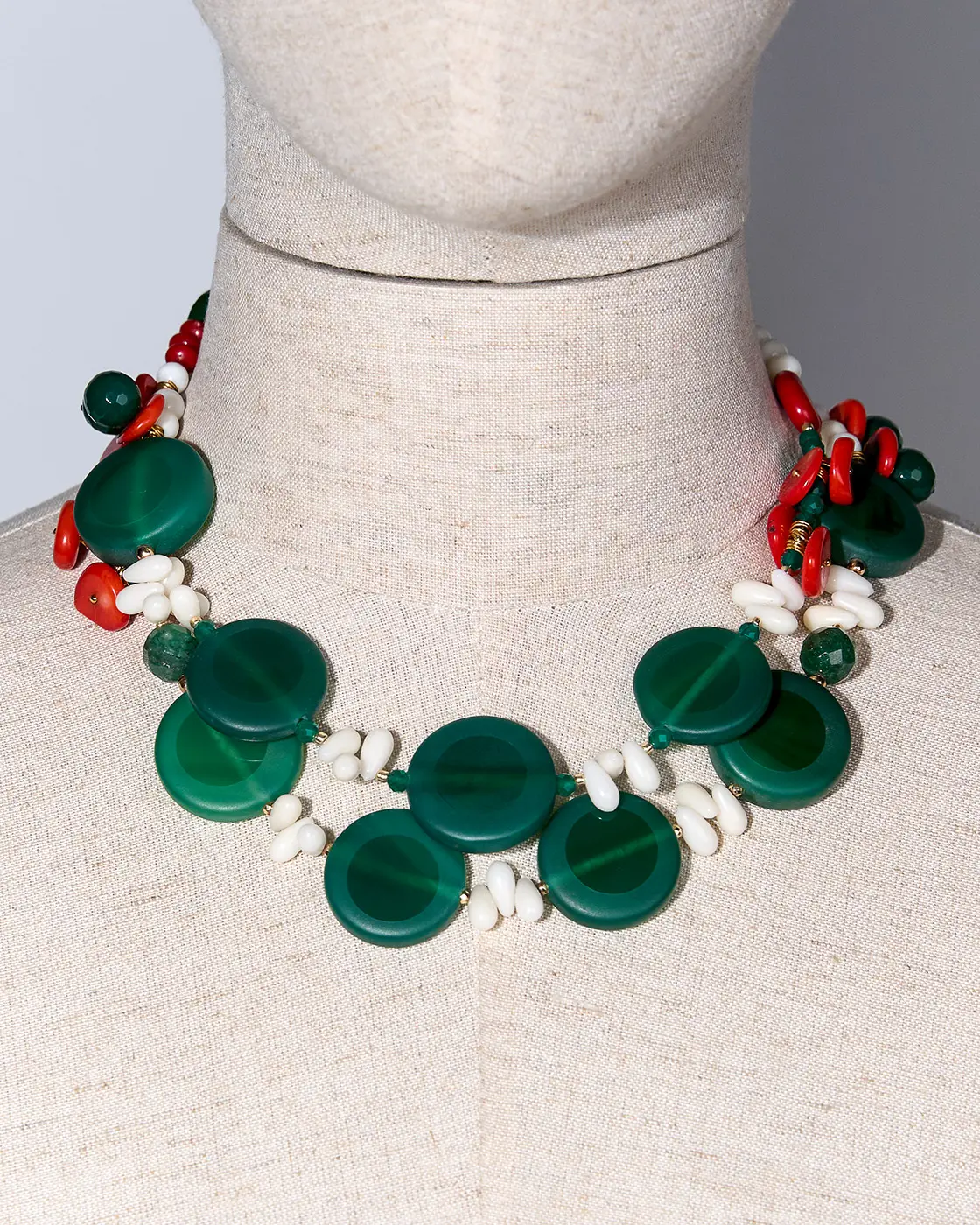 Бусы коралл, халцедон