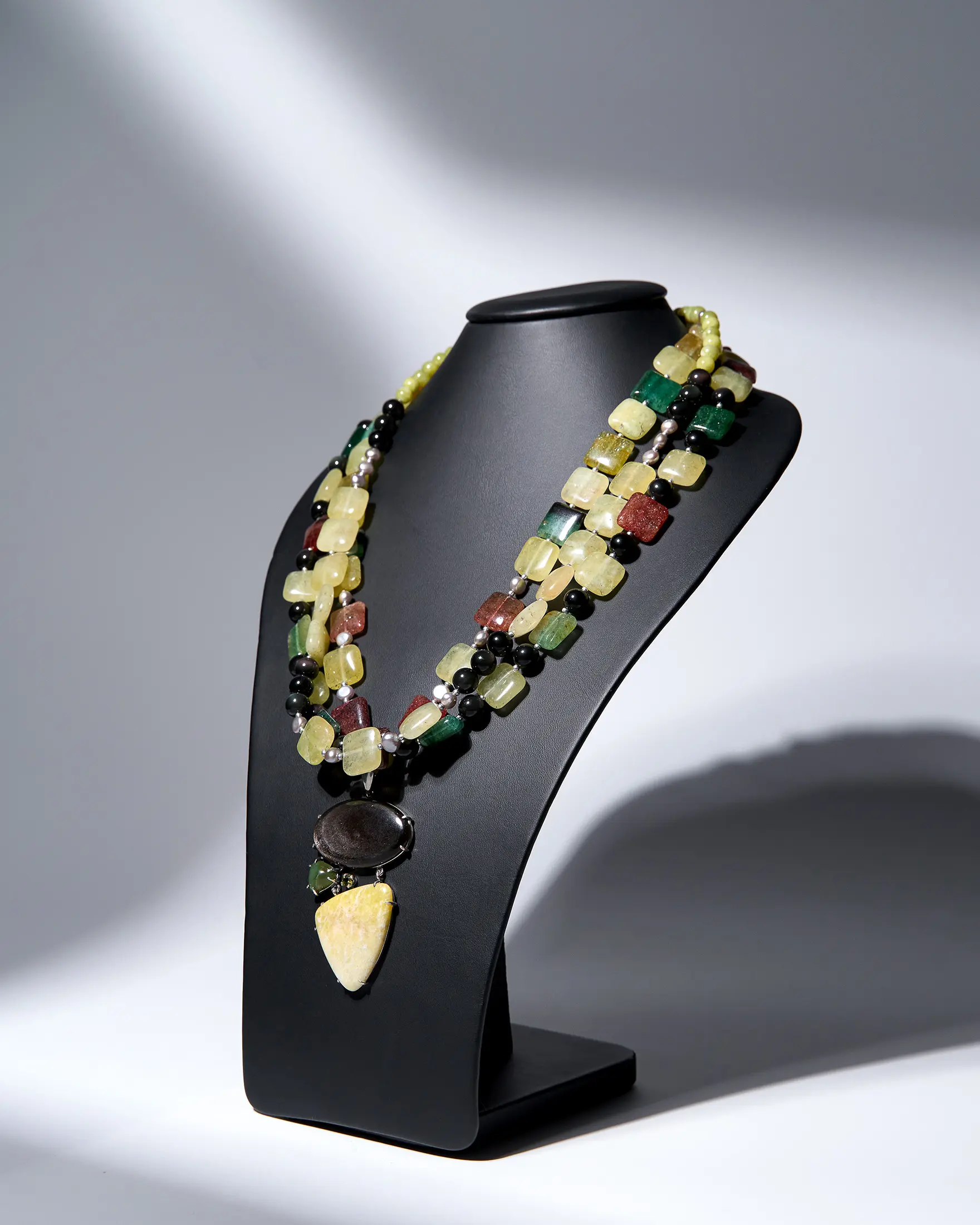Бусы из самоцветов с кулоном серафинит
