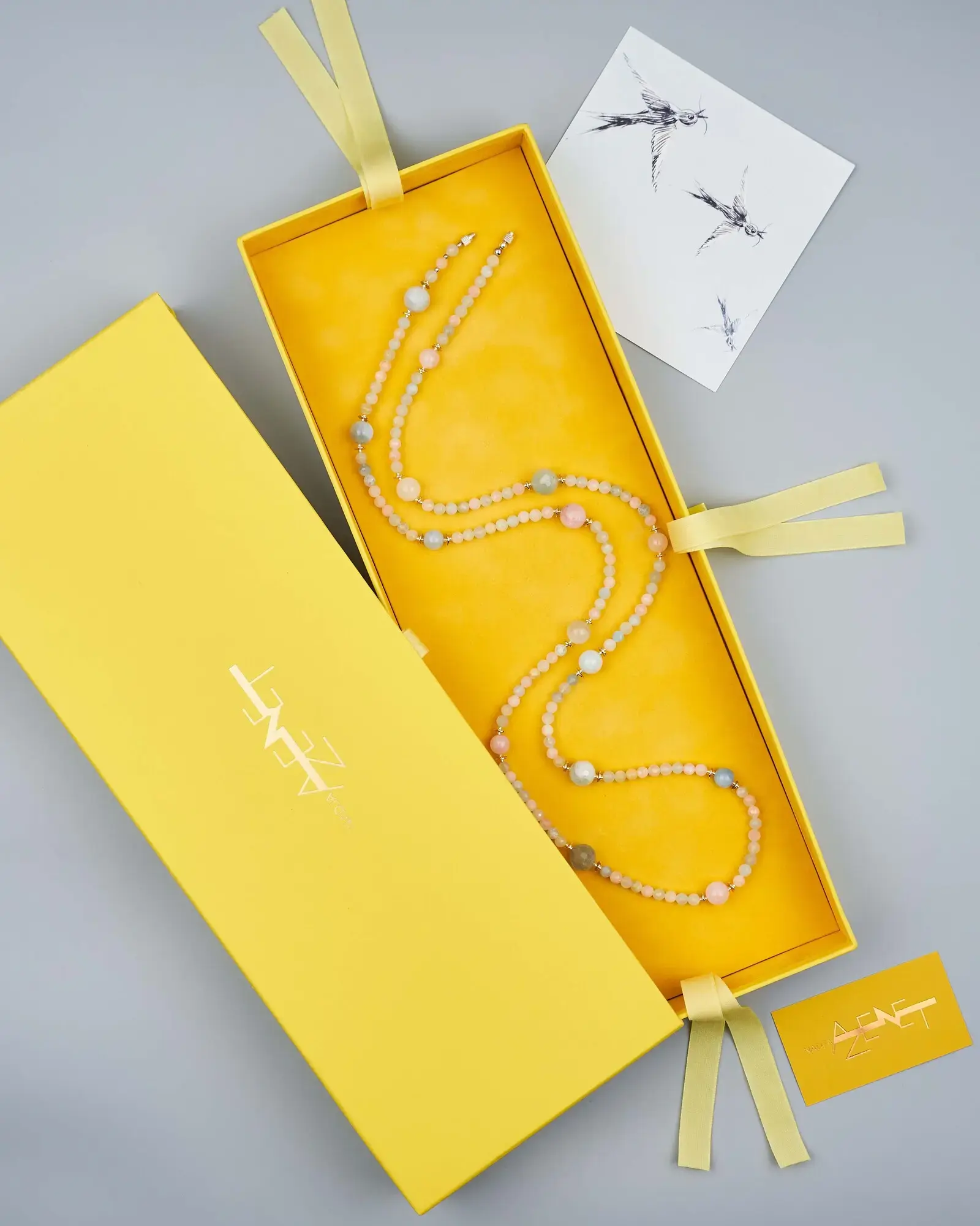 Бусы-трансформер, в комплект входит 2 нити длиной по 110 см. Каждую нить можно носить по отдельности, создавать эффект многослойности, а также соединить изделия в единую длинную нить между собой с помощью винтовой застежки.