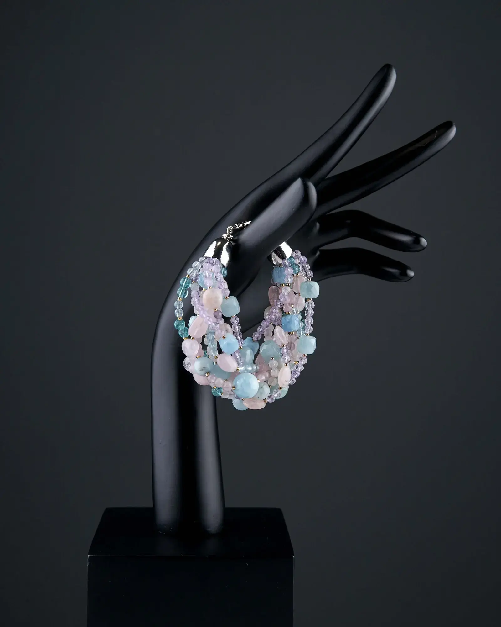 Браслет: розовый кварц, аметист, берилл, морганит, апатит.