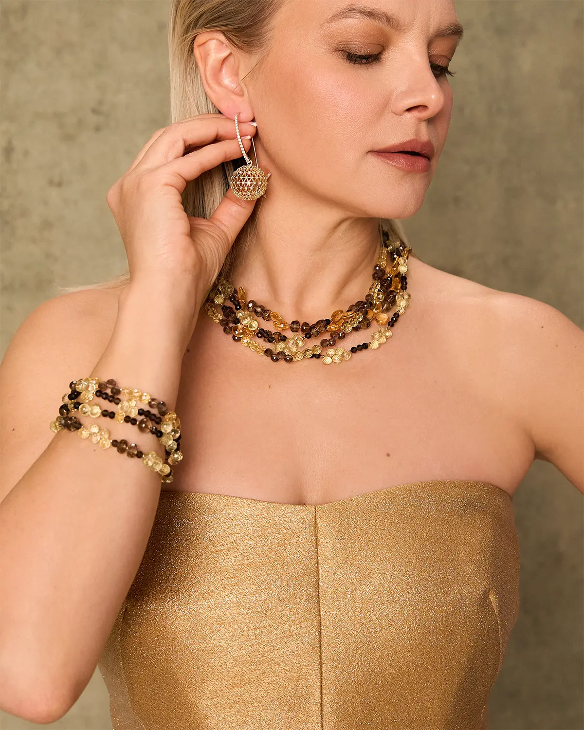 Бусины раухтопаза и цитрина разных форм премиум качества в ювелирной огранке.