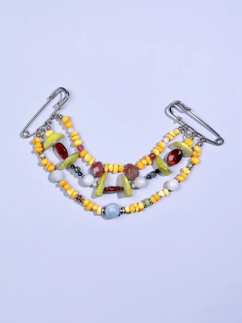 Взрыв ярких красок и жизнерадостных оттенков в одном украшении. В нем собраны самые энергичные камни: солнечный янтарь, сочный клубничный кварц, графичная яшма и переливающийся бычий глаз. Необычная форма бусин и их природная текстура делают украшение уникальным акцентом для расслабленного стиля. Носите её с джинсами и футболкой, платьем или кардиганом — она мгновенно добавит образу лёгкости и индивидуальности. Это идеальный аксессуар для тех, кто ценит удобство, яркие детали и любит выделяться.