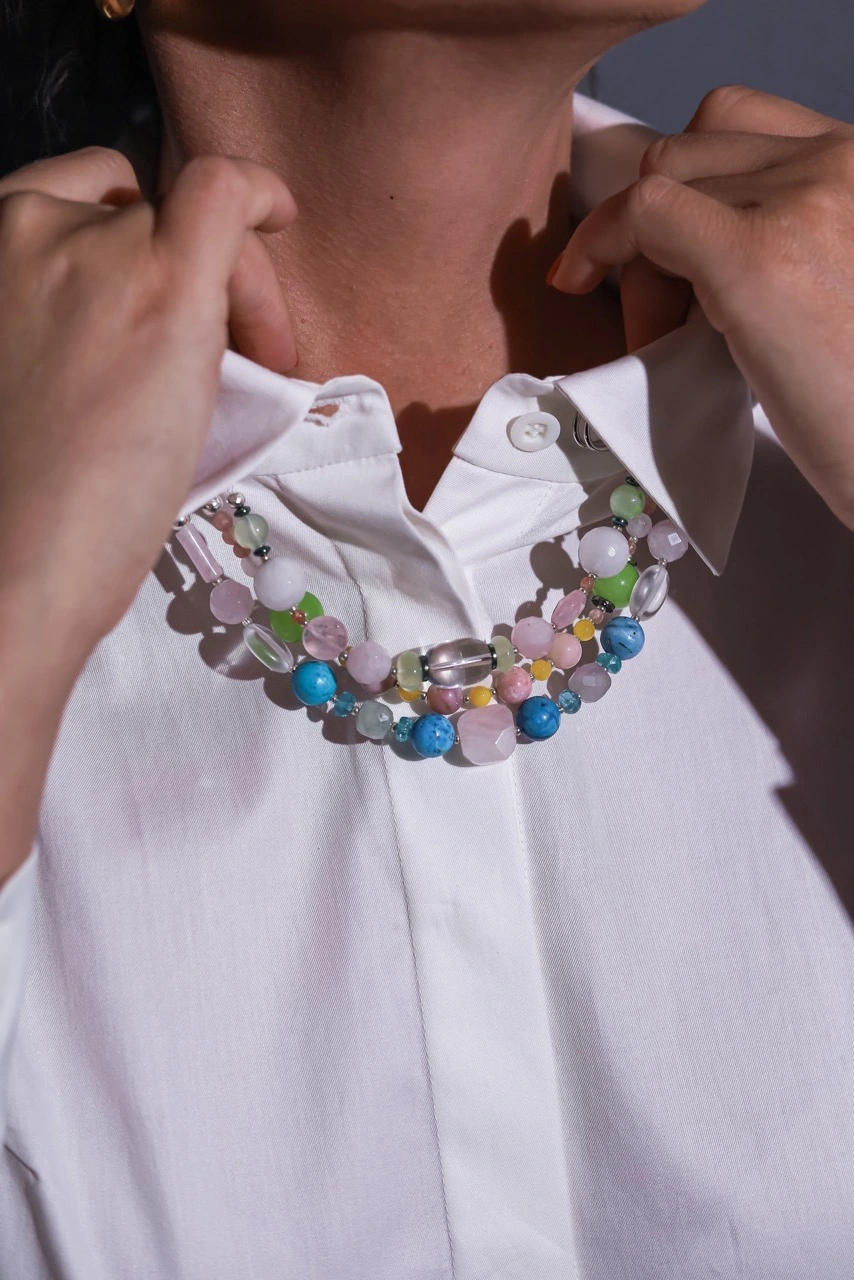 - Камни: Турквенит, Горный хрусталь, Жадеит, Опал, Пренит, Розовый кварц, Апатит