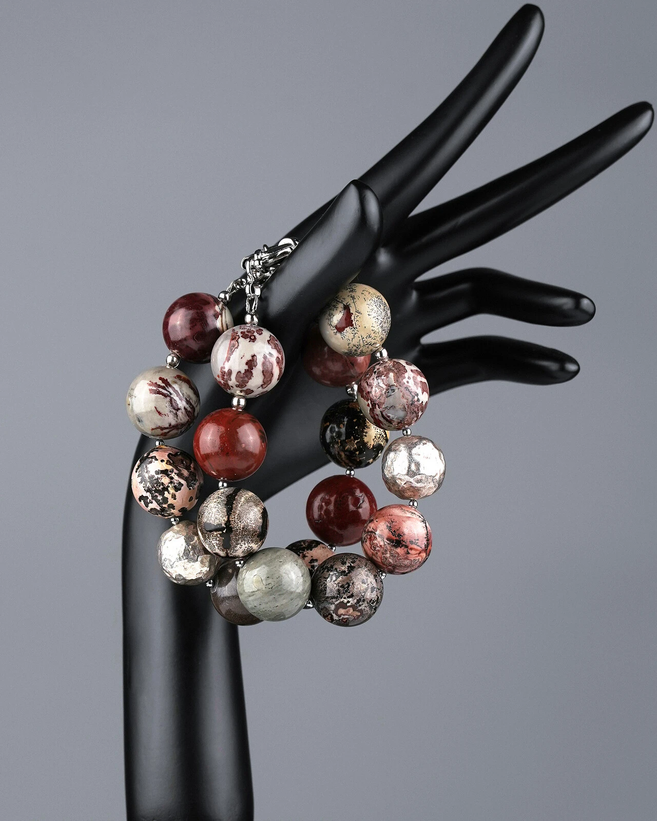 Браслеты: крупная яшма чохуа, серебро 925 пробы. Диаметр бусин: 1,9 - 2 см.